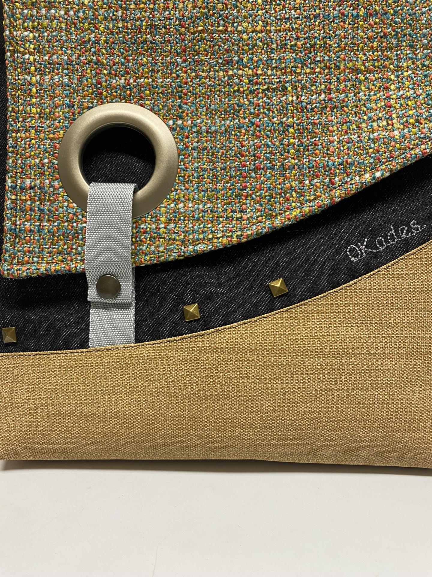 Hecho con todo el mimo y cuidando cada detalle , tela base vaquera, tela de tapicería y piel vegana.