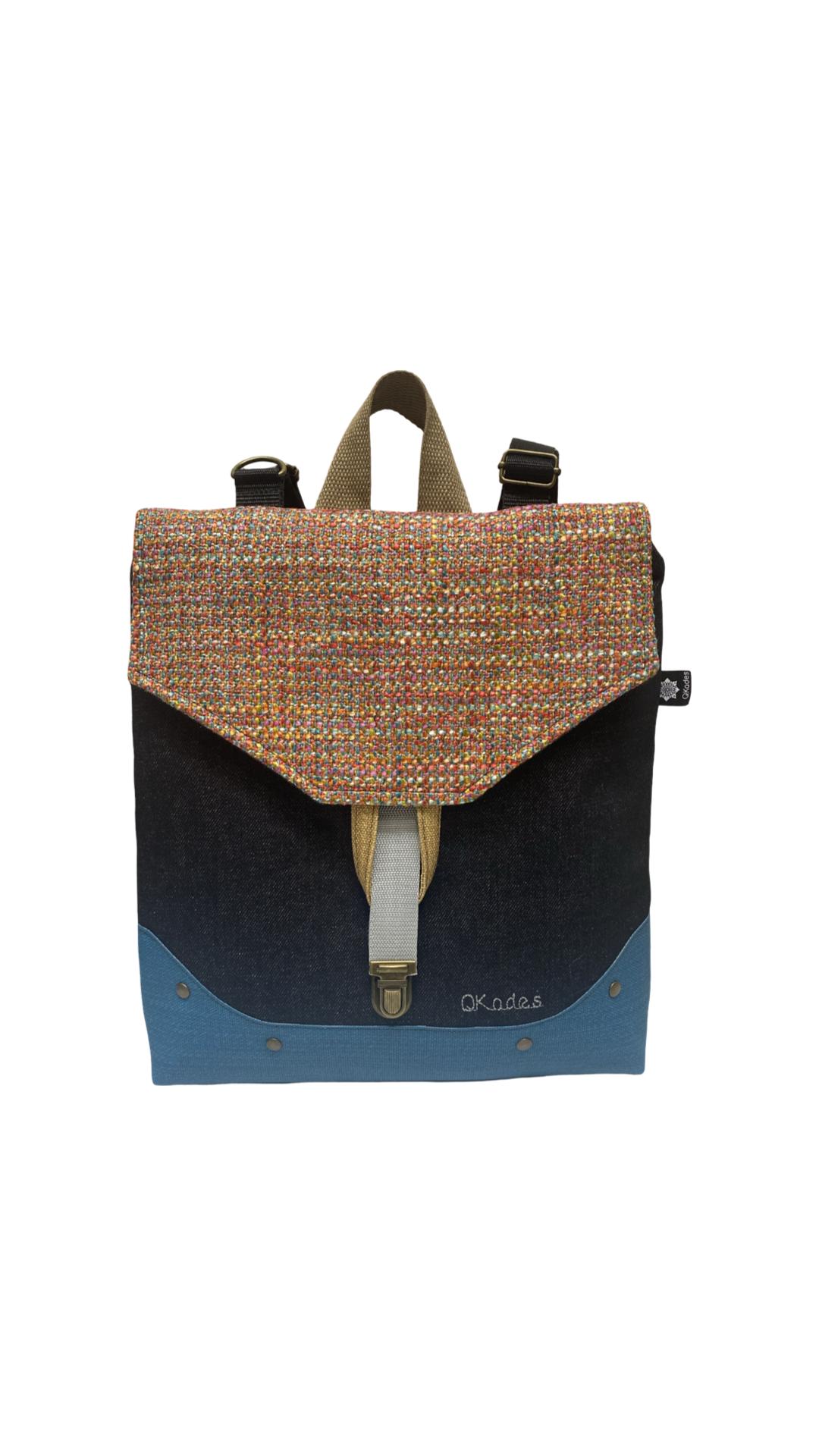 Hecho con todo el mimo y cuidando cada detalle , tela base vaquera, tela de tapicería y piel vegana.