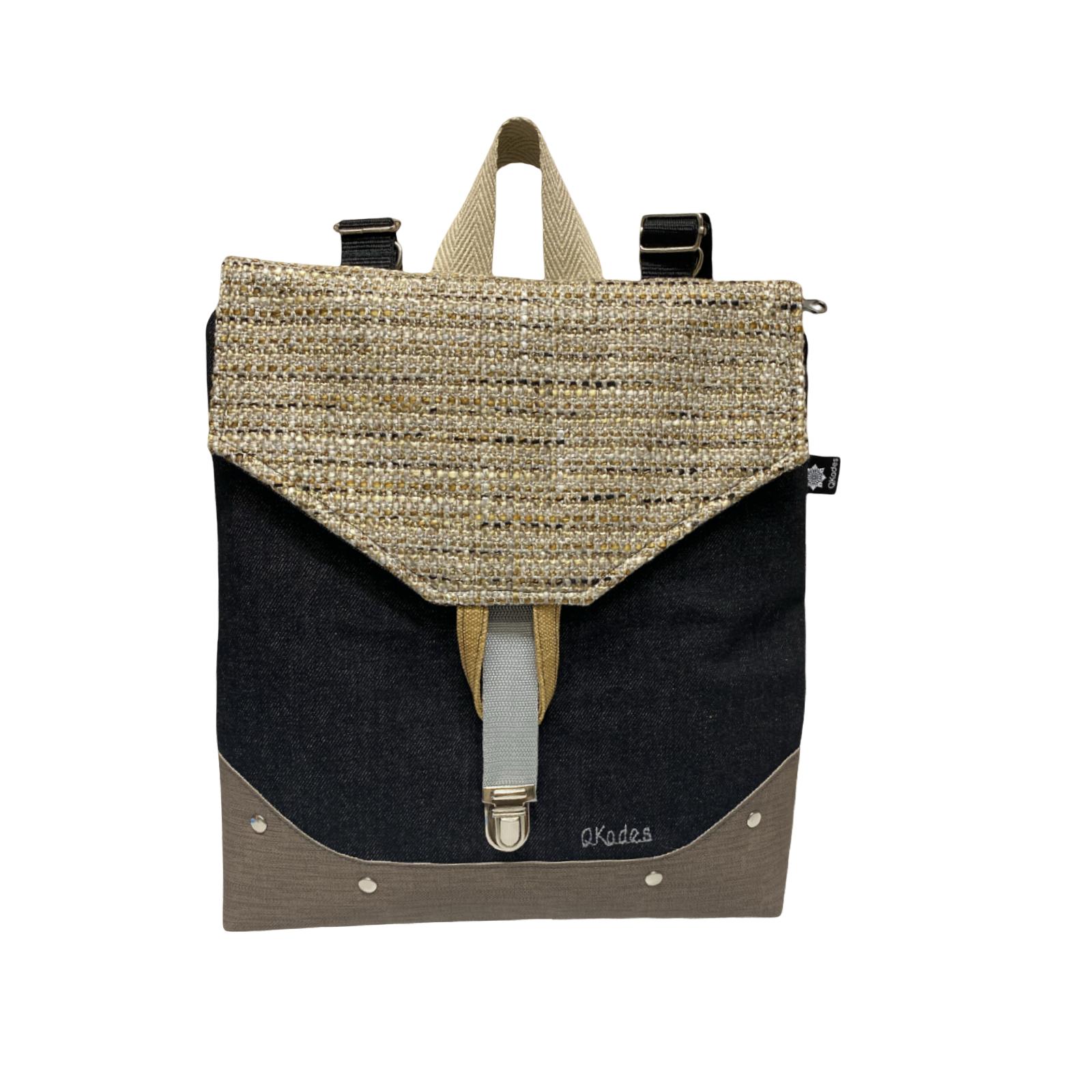 Hecho con todo el mimo y cuidando cada detalle , tela base vaquera, tela de tapicería y piel vegana.